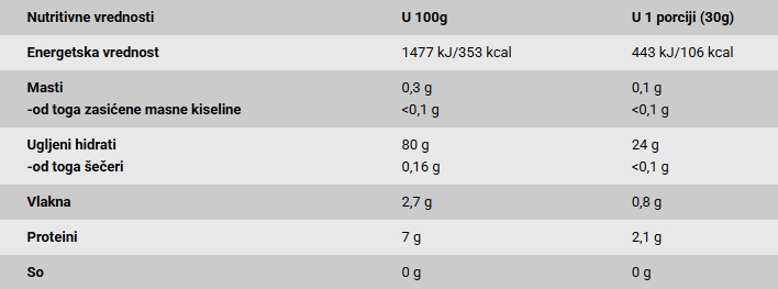 - 25 g složenih ugljenih hidrata po porciji od 30 g