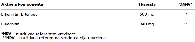 Ostali sastojci: L-karnitin L-tartrat, kapsula (želatin, boja (titanijum-dioksid)), sredstvo protiv zgrudvavanja (silicijum-dioksid).