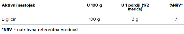 Sastojci: 100% glicin (slobodna aminokiselinska forma).