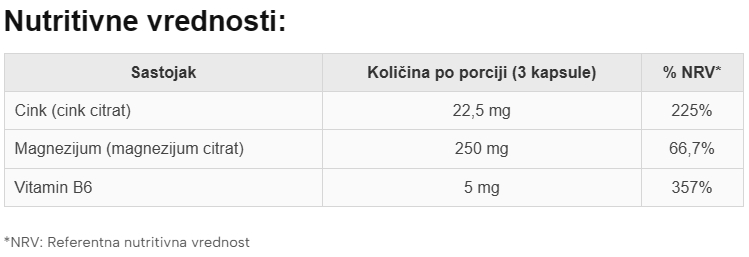 Napomena: Dodatak ishrani nije zamena za raznovrsnu ishranu i zdrav način života. Preporučena dnevna doza se ne sme prekoračiti. Čuvati van domašaja dece, na suvom i hladnom mestu.