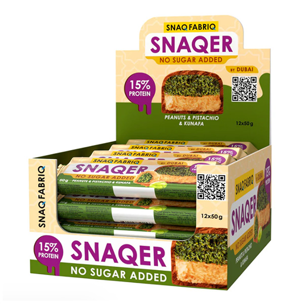 Snaqer bar je čokoladica sa pastom pistaćija/lešnika/kikirikija i karamel sirupom, prelivena mlečnom čokoladom. Bogatog ukusa sa 10 grama proteina, 4 grama ugljenih hidrata i 14 grama vlakna idealna je za brzu užinu, kada vam je potrebna energija bez suvišnog šećera.