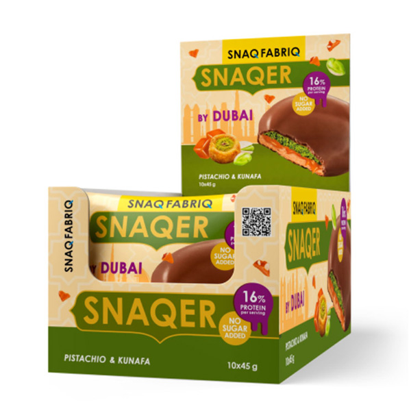 Snaqer bar je čokoladica sa pastom pistaćija/lešnika/kikirikija i karamel sirupom, prelivena mlečnom..